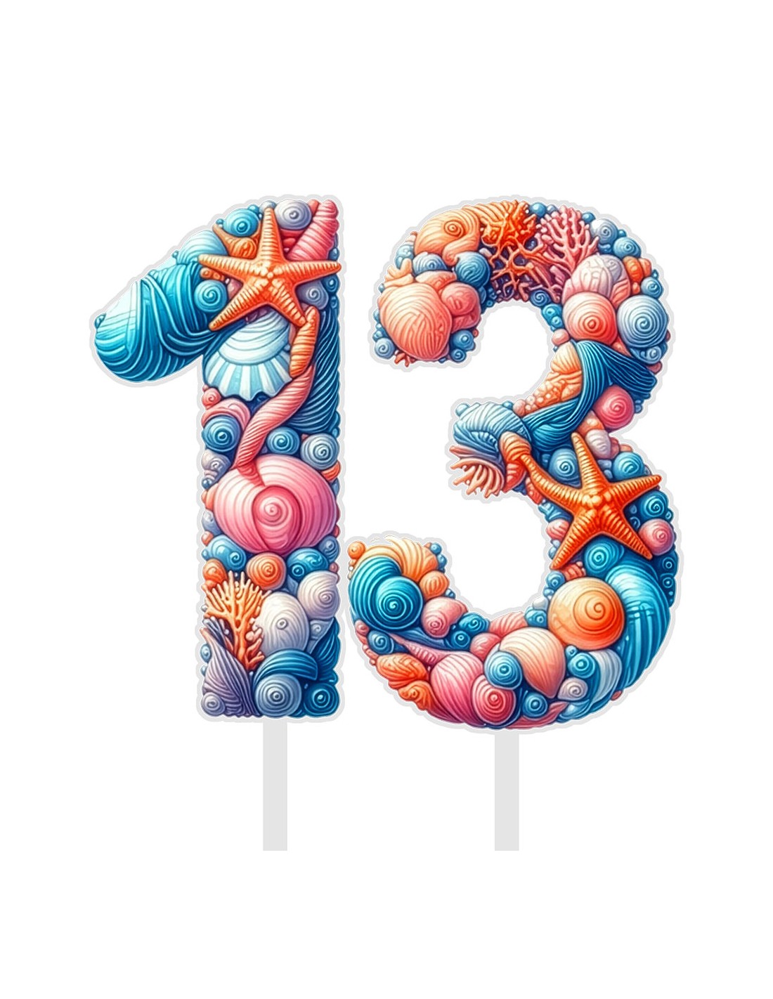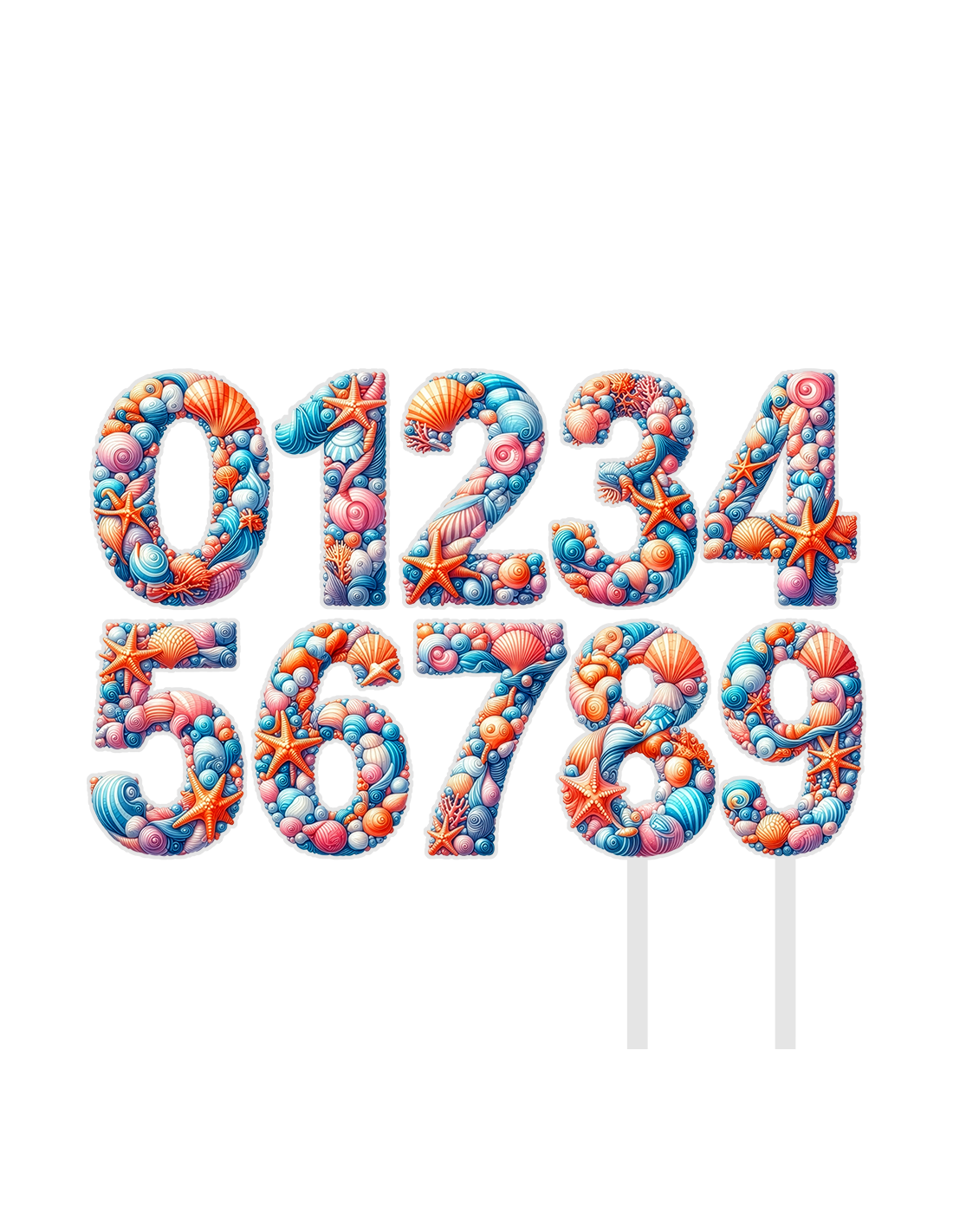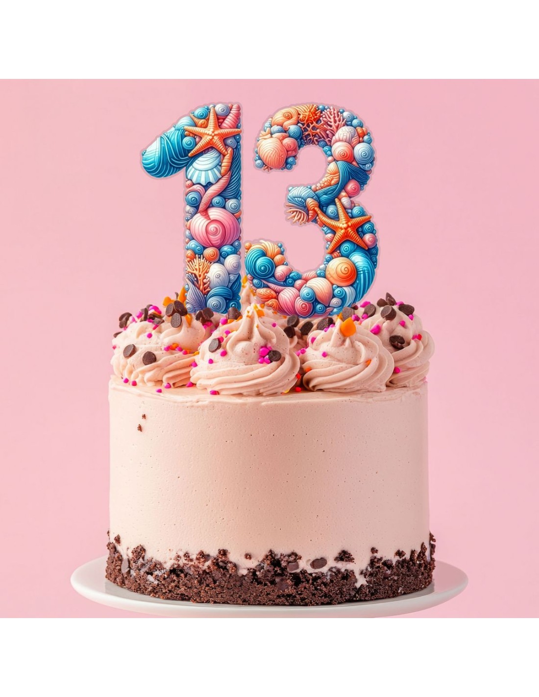 Full Colour Taarttopper op Maat: Schelpen - Cijfers Dubbel