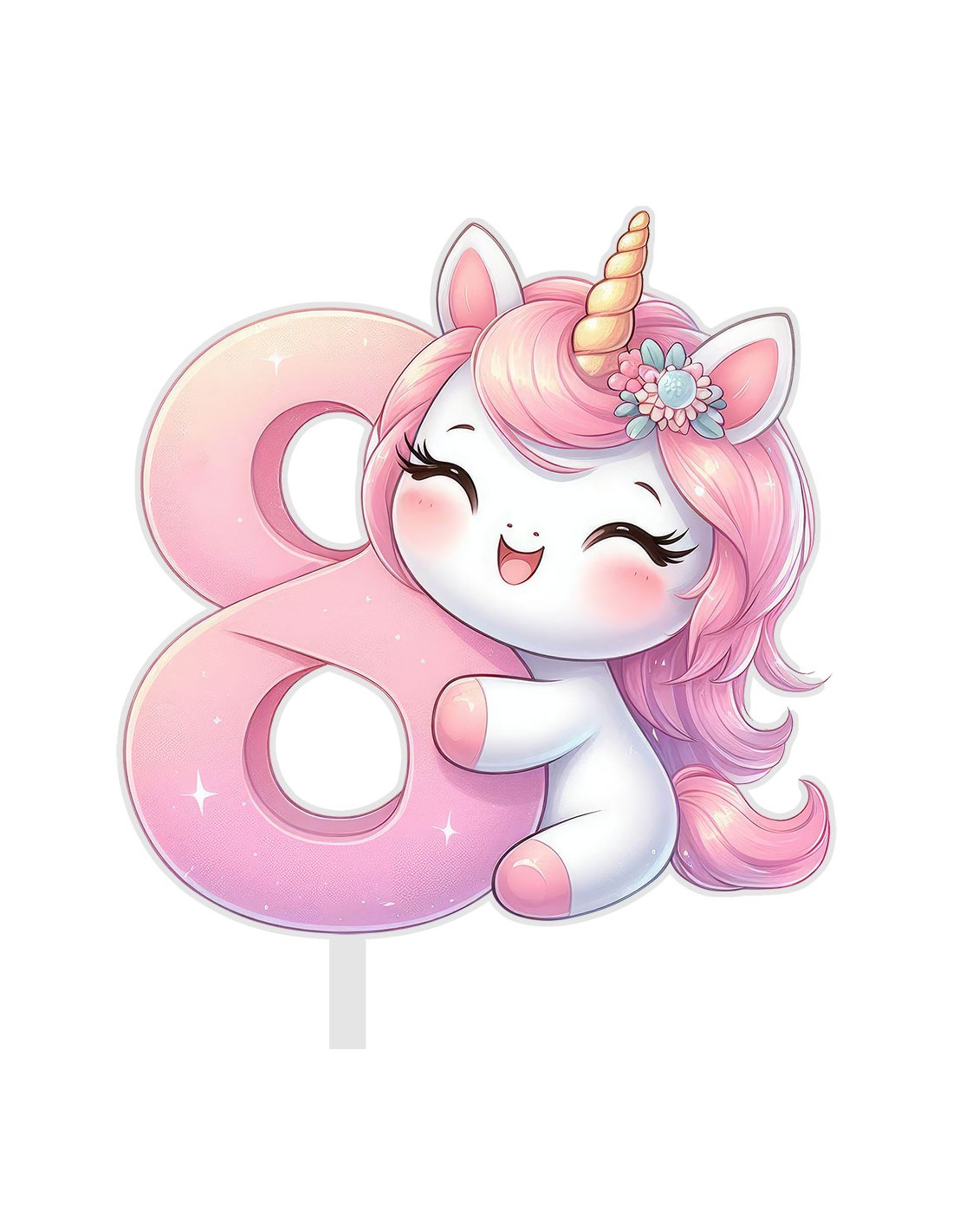 Full Colour Taarttopper op Maat: Unicorn - Cijfer Enkel