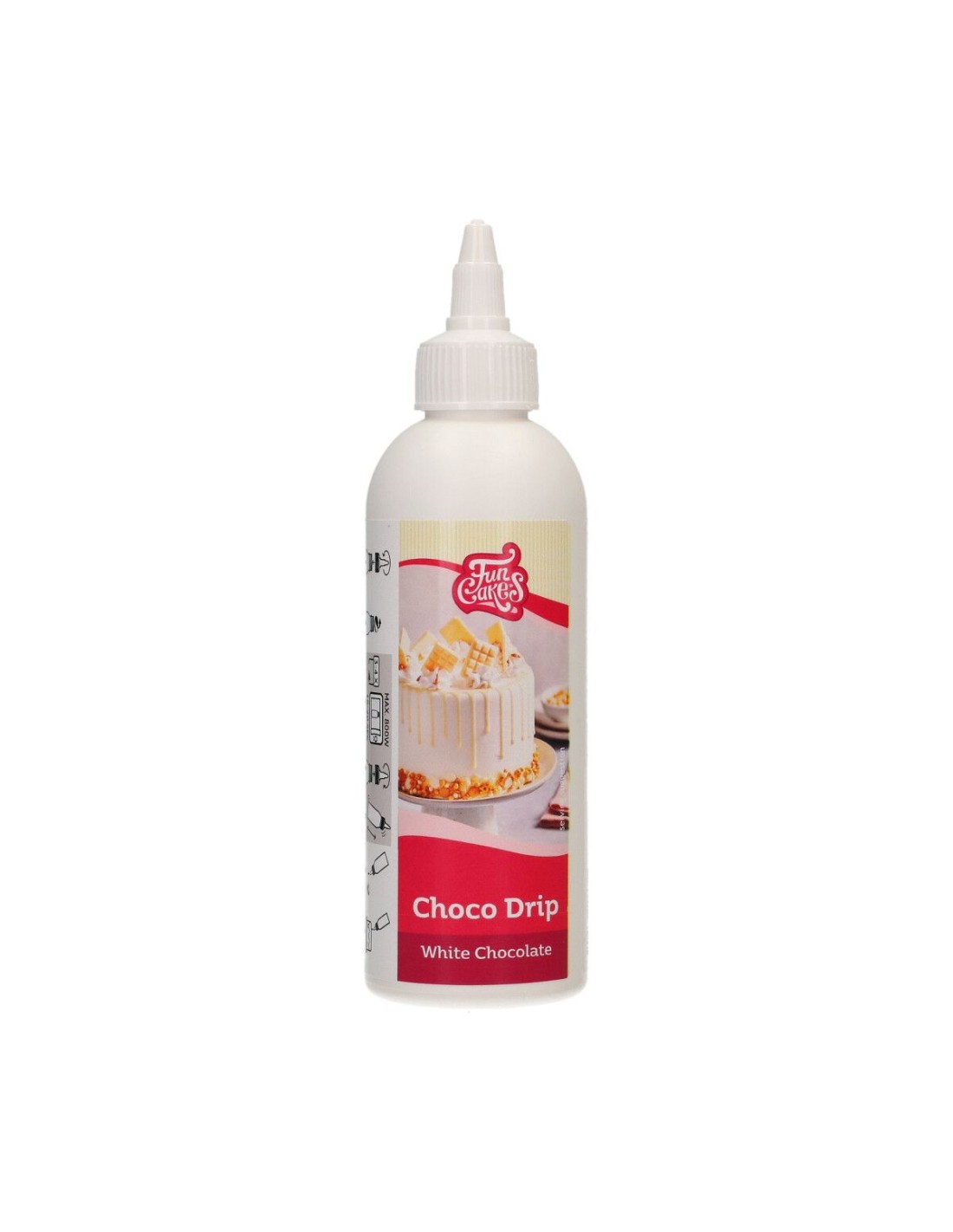 Met de FunCakes Cake Drips maak je eenvoudig dripcakes. De FunCakes Cake Drip zit in een druppelflesje dat je in de magnetron kunt zetten om de drip te smelten. Met dit handige knijpflesje knijp je simpelweg en drizzle je het direct op je cake! De FunCakes Cake Drip Creamy White 180 g heeft een heerlijke zoete vanillesmaak en is verkrijgbaar in meerdere kleuren. Je kunt dit product ook gebruiken om traktaties of taarten te decoreren!