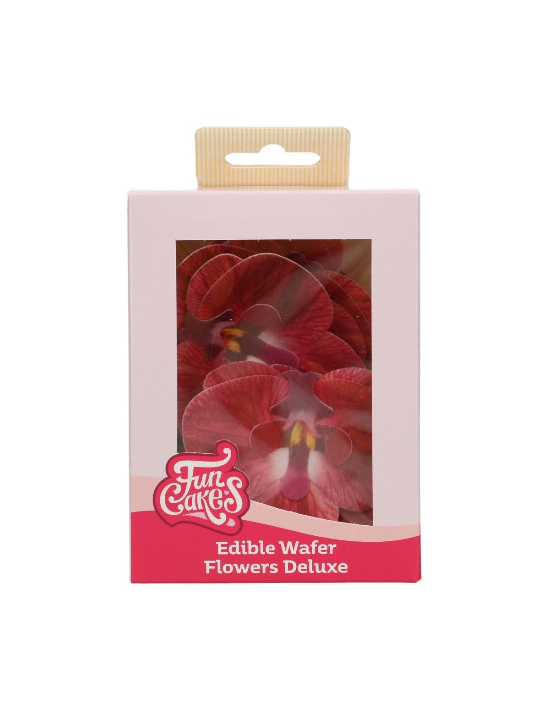Laat je lekkernijen bloeien met de FunCakes Edible Wafer Flowers Deluxe! Met deze kant-en-klare bloemen geef je je traktaties een vrolijke, indrukwekkende uitstraling zonder enige moeite. De bloemen zijn verkrijgbaar in verschillende ontwerpen en perfect te combineren voor je eigen kleurrijke combinaties. Kies voor een grote bloemenexplosie of juist een subtiele maar stijlvolle touch voor je taarten. Deze verpakking bevat 10 middelgrote rode orchideeën, elk met een afmeting van 8,5 x 7,5 cm.