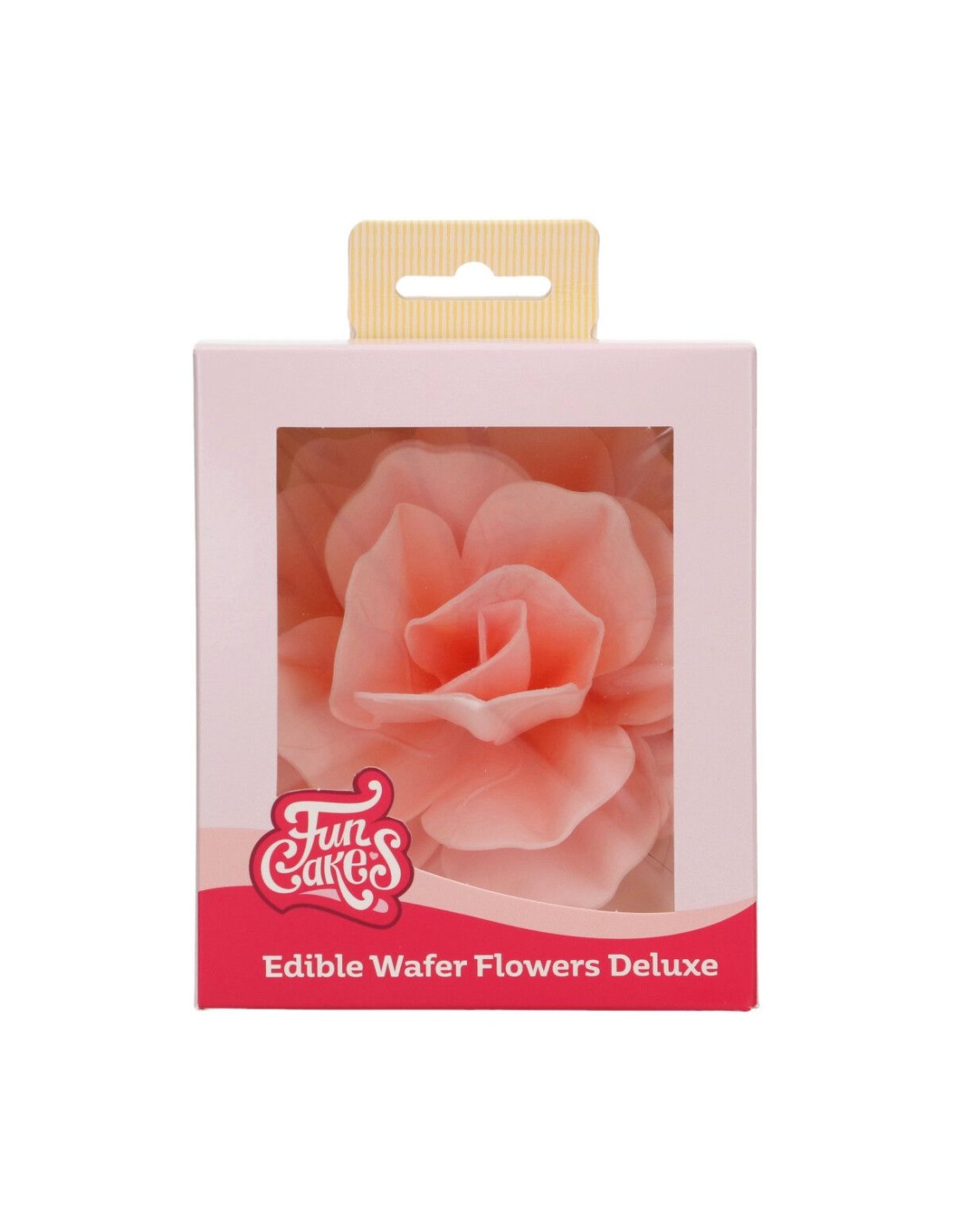 Laat je lekkernijen bloeien met de FunCakes Edible Wafer Flowers Deluxe! Met deze kant-en-klare bloemen geef je je traktaties een vrolijke, indrukwekkende uitstraling zonder enige moeite. De bloemen zijn verkrijgbaar in verschillende ontwerpen en perfect te combineren voor je eigen kleurrijke combinaties. Kies voor een grote bloemenexplosie of juist een subtiele maar stijlvolle touch voor je taarten. Deze verpakking bevat 1 grote roze roos Pastella van 12,5 cm.