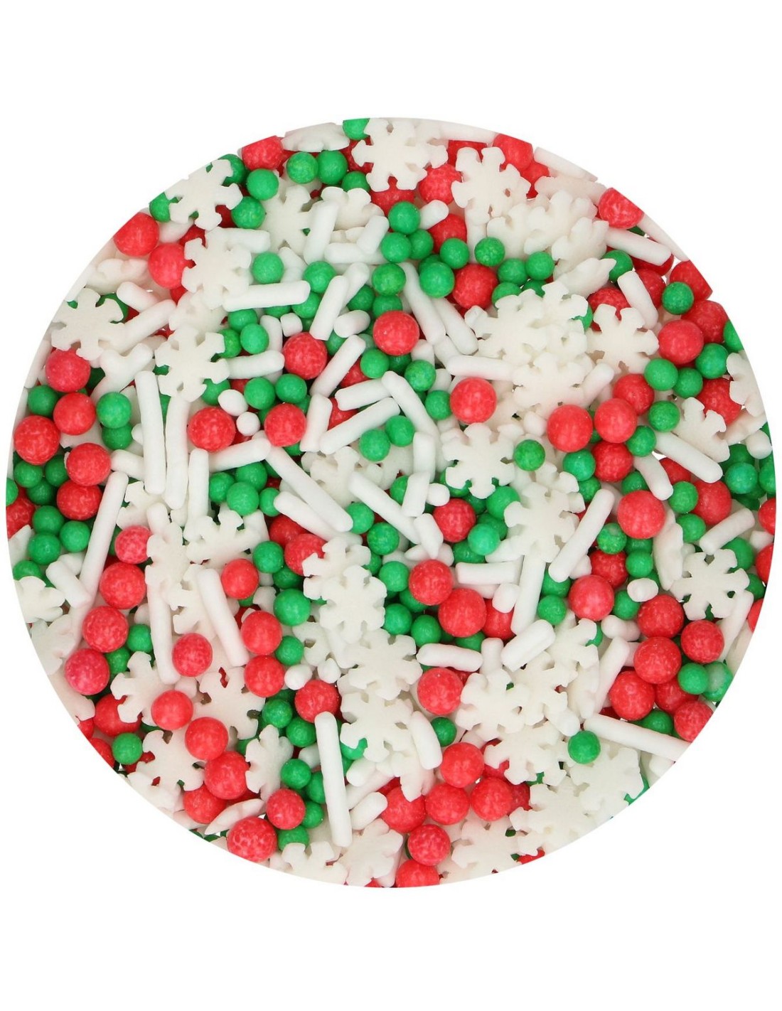 De FunCakes Sprinkle Medley Christmas maakt je zelfgemaakte traktaties helemaal af voor de Kerstdagen! De medley bestaat uit witte, rode en groene sprinkles en is perfect voor het versieren van cupcakes, brownies, koekjes, desserts en meer.