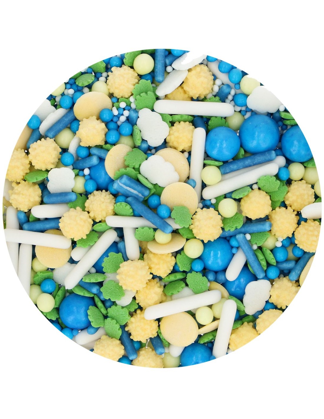Breng de sfeer van Italië in je baksels met de FunCakes Sprinkle Medley Ciao Bella! Deze kleurrijke mix in blauw, geel, groen en wit doet denken aan de charme van de Amalfikust en de warme kleuren van Toscane. Of je nu taarten, cupcakes of koekjes bakt, deze medley geeft je creaties een speelse en elegante uitstraling. Het voelt als een Italiaanse zomer, maar dan geschikt voor elk seizoen en iedere gelegenheid. Met de FunCakes Sprinkle Medley Ciao Bella maak je van ieder bakmoment een klein mediterraans feestje!