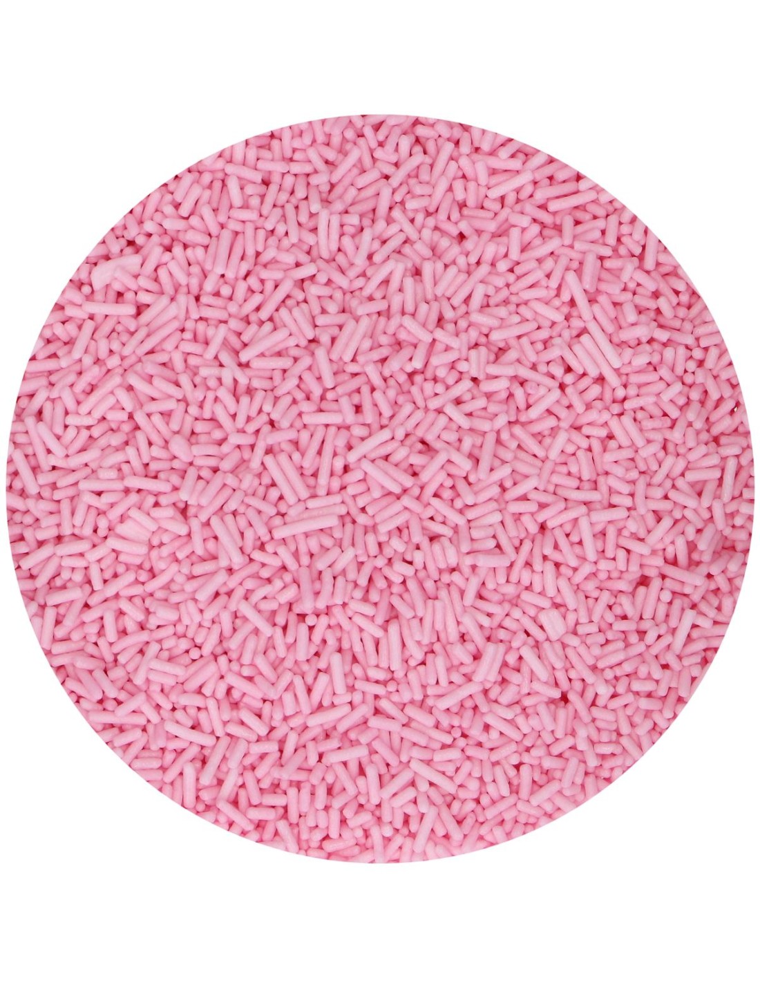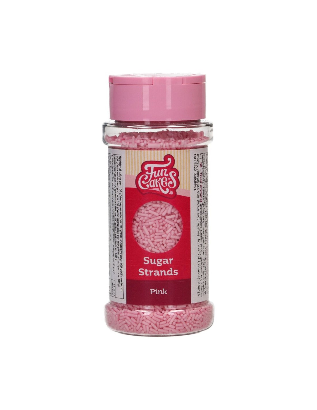 FunCakes Sugar Strands Roze 80 g zijn kleurrijke, fijne suikerstaafjes die perfect zijn voor het decoreren van allerlei bakcreaties. Of je nu cupcakes, taarten of koekjes maakt, deze vrolijke sprinkles geven elke traktatie een feestelijke uitstraling. Strooi ze eenvoudig over een laagje botercrème, glazuur of fondant voor een speels en kleurrijk effect. De potjes bevatten 80 gram, wat ideaal is voor meerdere decoratiesessies. Maak je creaties nog specialer met FunCakes Sugar Strands!