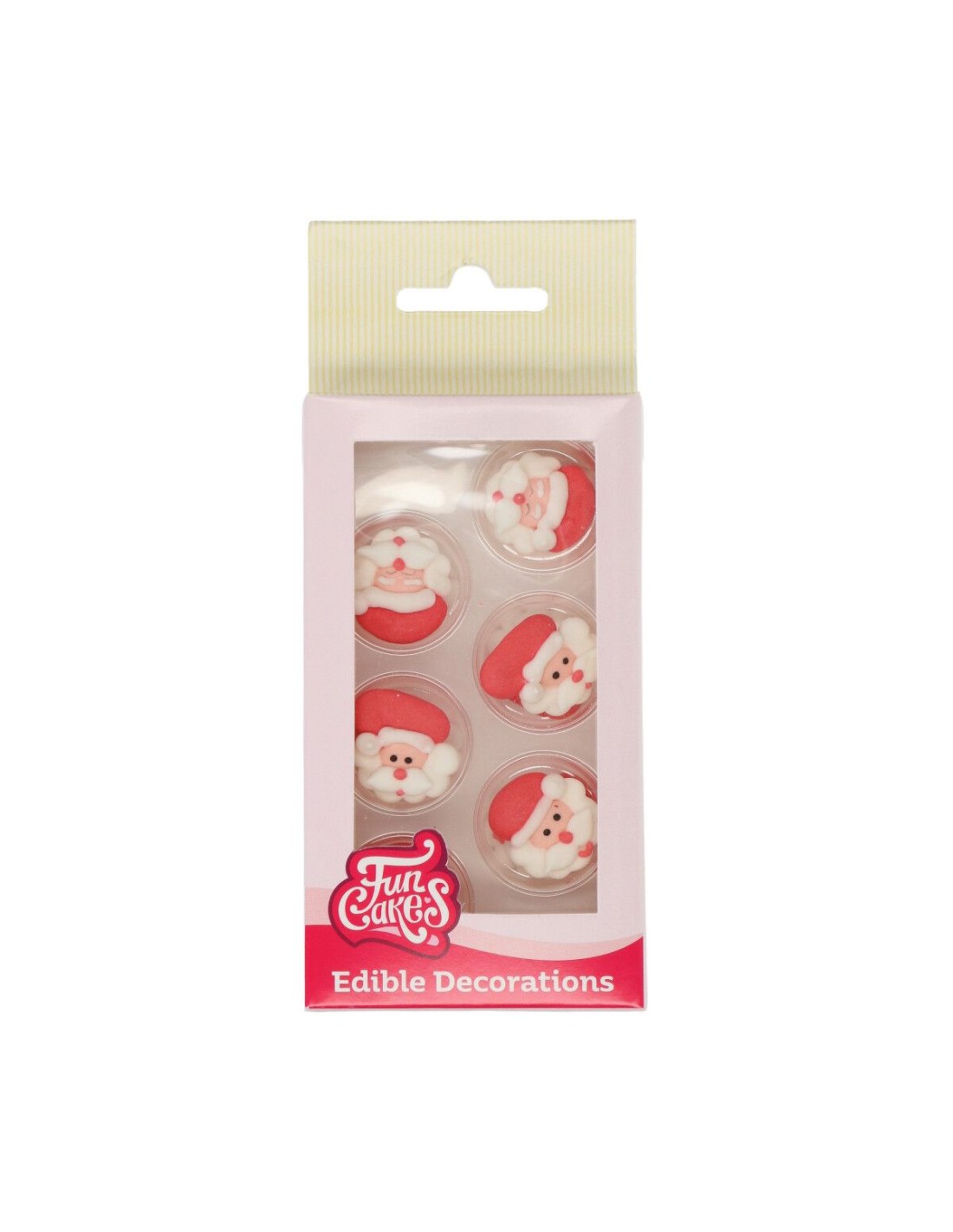 Tijdens de Kerst mag de Kerstman niet ontbreken op je zelfgemaakte traktaties! Versier je cupcakes, taarten of koekjes met deze leuke Kerstman suikerdecoraties van FunCakes.