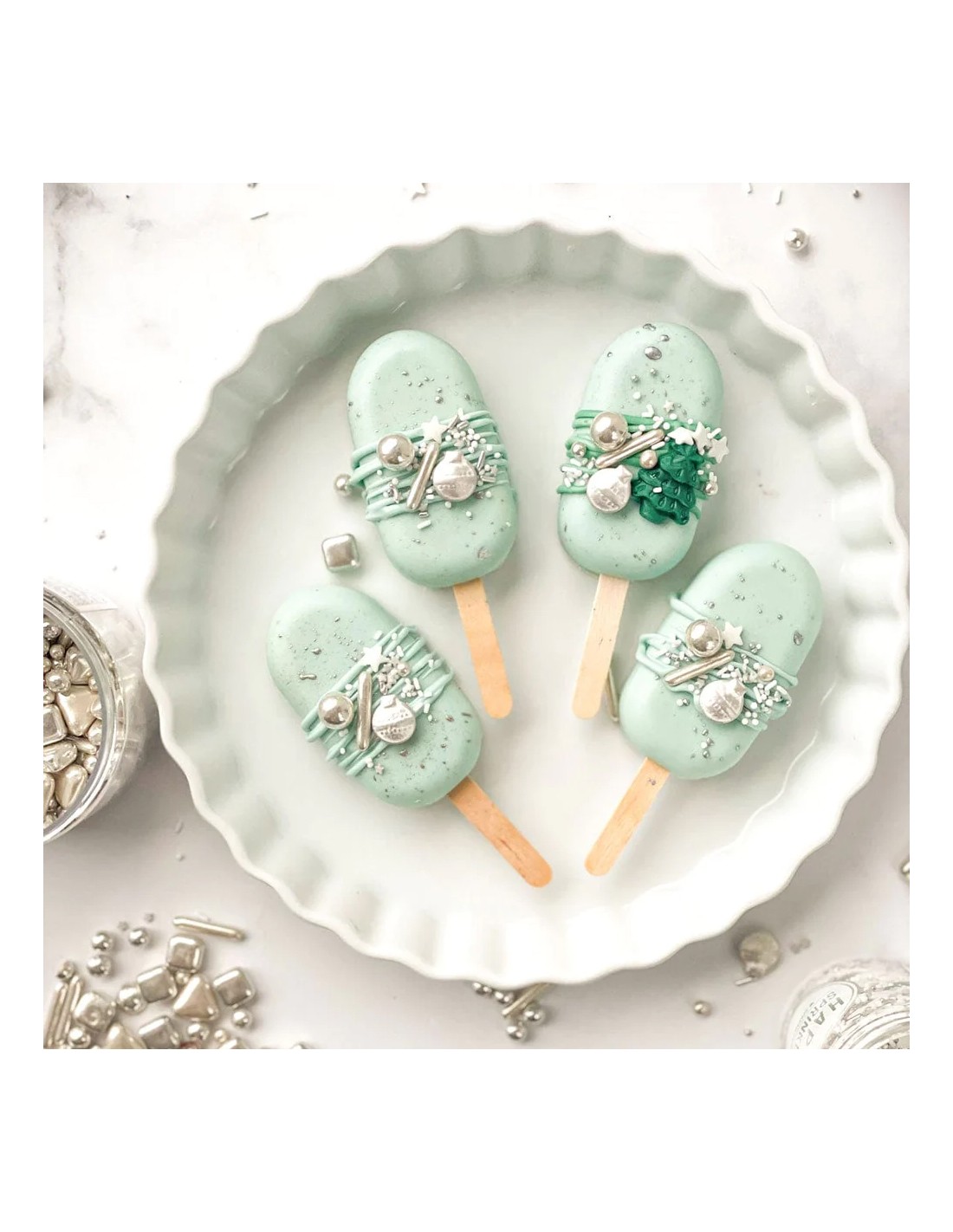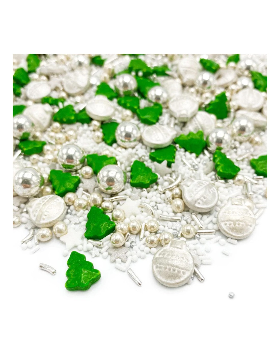 Kerstavond kan komen!✨ Kerstavond is een van onze mooiste strooimixen voor de kerstperiode. De verschillende zilvertinten van de suikerparels, sterren en hagelslag glanzen en vormen de perfecte, elegante basis voor de kleine kerstboomballen en de bijpassende groene kerstbomen. Een droom in zilver, wit en groen en perfect voor iedereen die zijn kerstbakwerk eleganter wil maken - de mogelijkheden voor bakken en decoreren zijn eindeloos.