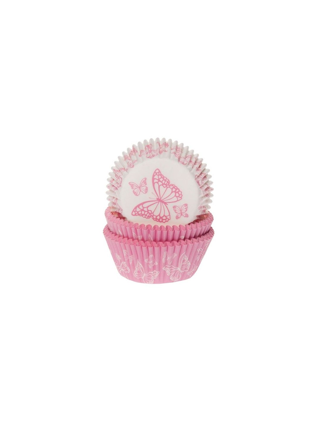 House of Marie Baking Cups Vlinder Roze Assorti -48st-
