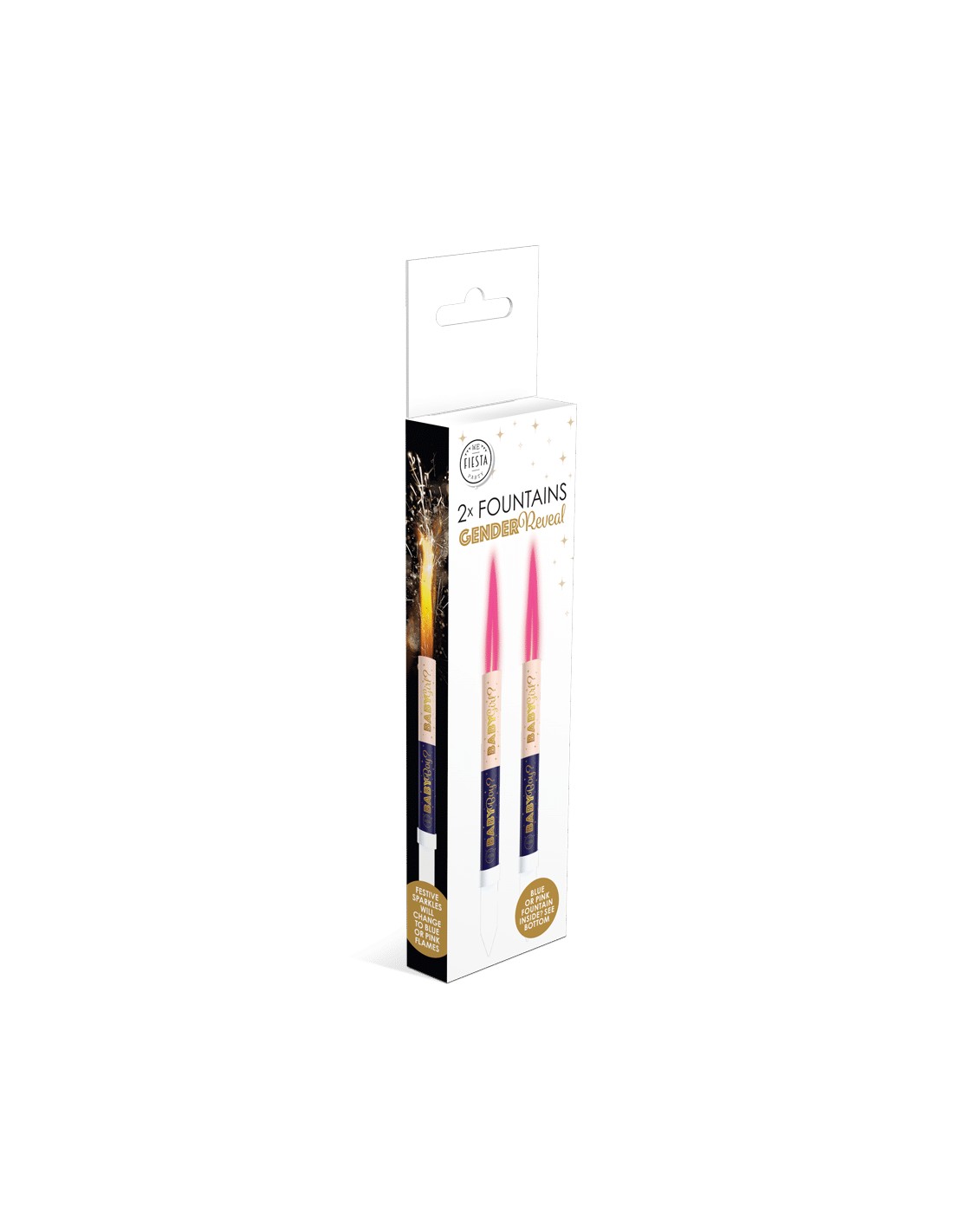 Feestelijke ijsfontein met roze vuur. Perfect voor de geboorte of gender reveal.Brandduur: 50 secondenAantal: 2 stuks inclusief houder.