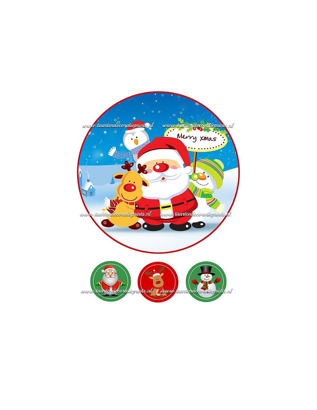 Een afbeelding in kerstthema op een formaat van 20cm doorsnede. U ontvangt extra 3 kleine afbeeldingen van 5cm doorsnede.