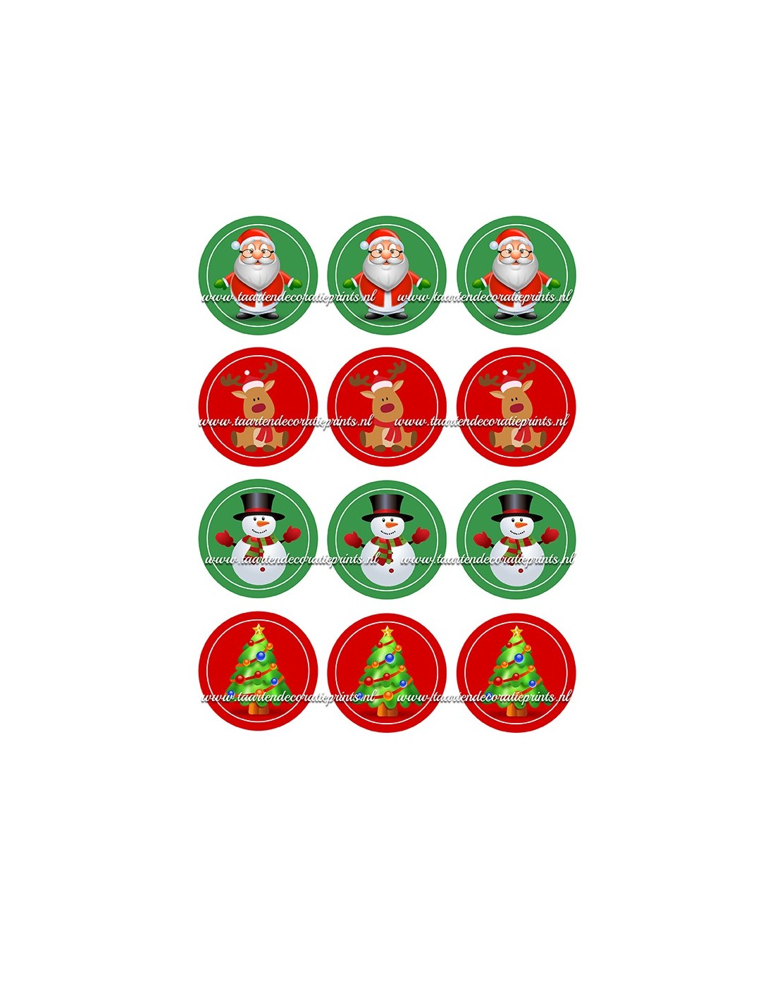 12 afbeeldingen in kerstthema op een formaat van 6cm doorsnede.