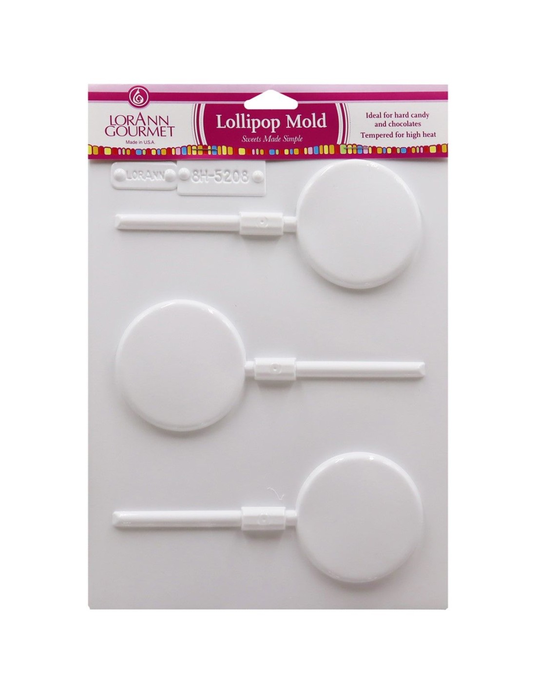Geschikt voor het maken van 3 grote ronde lolly's per keer. Formaat per stuk is 6,3 x 0,6 cm (ca. 25ml). De mal is bestand tegen hoge temperaturen en geschikt voor zowel hard snoep als chocolade.