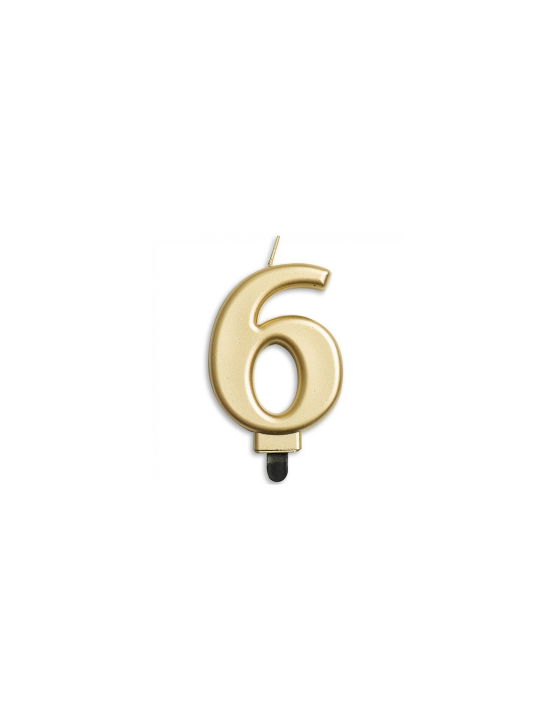Nummerkaars in de vorm van het cijfer 6 in de kleur metallic goud.