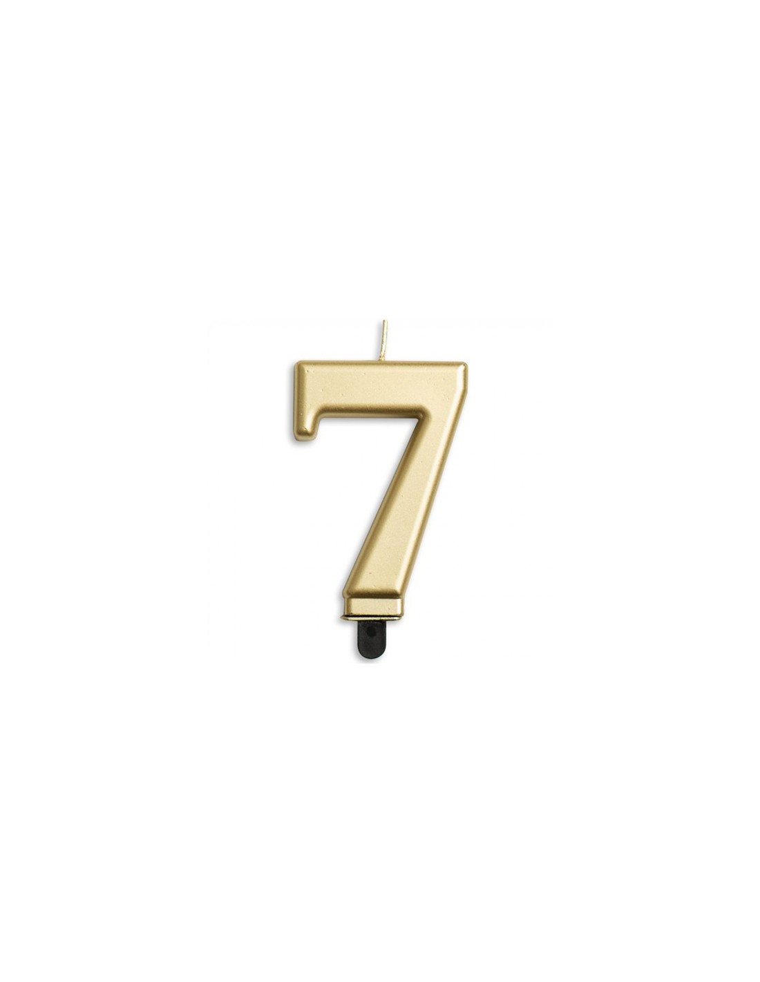 Nummerkaars in de vorm van het cijfer 7 in de kleur metallic goud.
