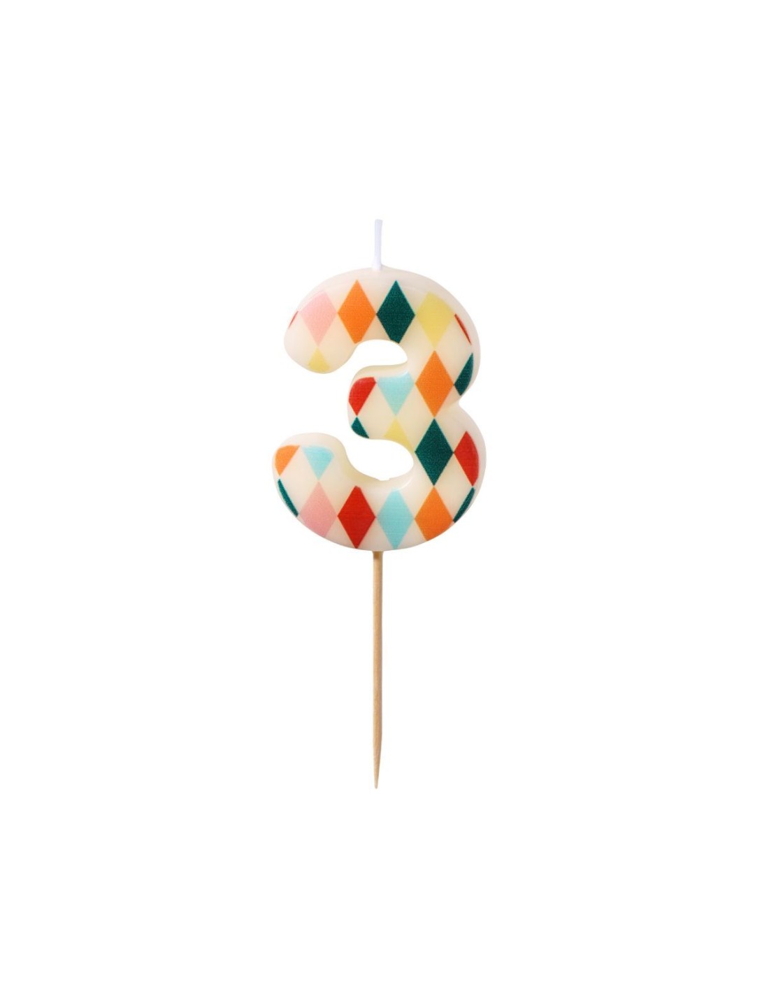 De PartyDeco Number Candle 3 Rhombus is de perfecte keuze voor het vieren van bijzondere momenten. Met een hoogte van 5,5 cm en een strak rhombusdesign brengt deze kaars een moderne en chique uitstraling naar elke taart of cupcake. Het getal '3' maakt de kaars ideaal voor verjaardagen, jubilea of andere belangrijke gelegenheden. De kaars is gemaakt van kwalitatief hoogwaardig materiaal, zodat hij veilig en gelijkmatig brandt. Voeg een extra vleugje glamour toe aan je feesttafel met de PartyDeco Number Candle 3 Rhombus – een stijlvolle manier om je feest te accentueren!