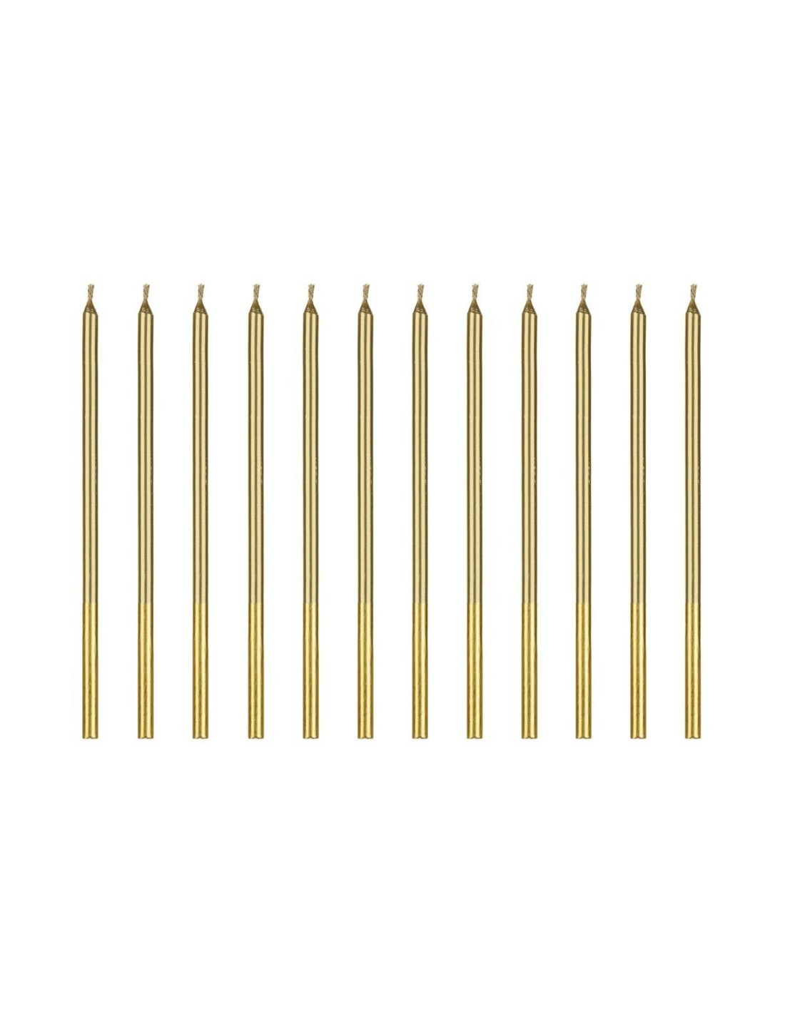 Voeg luxe toe aan elke taart met de PartyDeco Candles Gold (12 stuks). Deze elegante verjaardagskaarsen van 14 cm lang in glanzend goud zijn de perfecte finishing touch voor feestelijke momenten. Of je nu een chique verjaardag, een gouden jubileum of een stijlvol diner viert – deze kaarsen zorgen gegarandeerd voor een feestelijk accent.