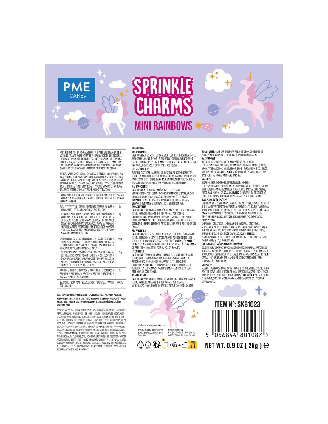 Deze Sprinkle Charms van PME zijn de eetbare accessoires waar je baksels op hebben gewacht. Elk charm-figuurtje is een hapklaar stukje plezier dat je traktaties direct laat stralen. Met designs variërend van eenhoorns tot raceauto’s en van voetballen tot bloemen, geven deze chunky charms een instant wow-factor aan elk baksel. Perfect over ijs of op donuts, desserts, cupcakes en meer. Of je nu decoreert voor thematische verjaardagen, feestdagen of gewoon een zoete verrassing maakt voor een geliefde, een beetje PME-charm doet al snel veel.