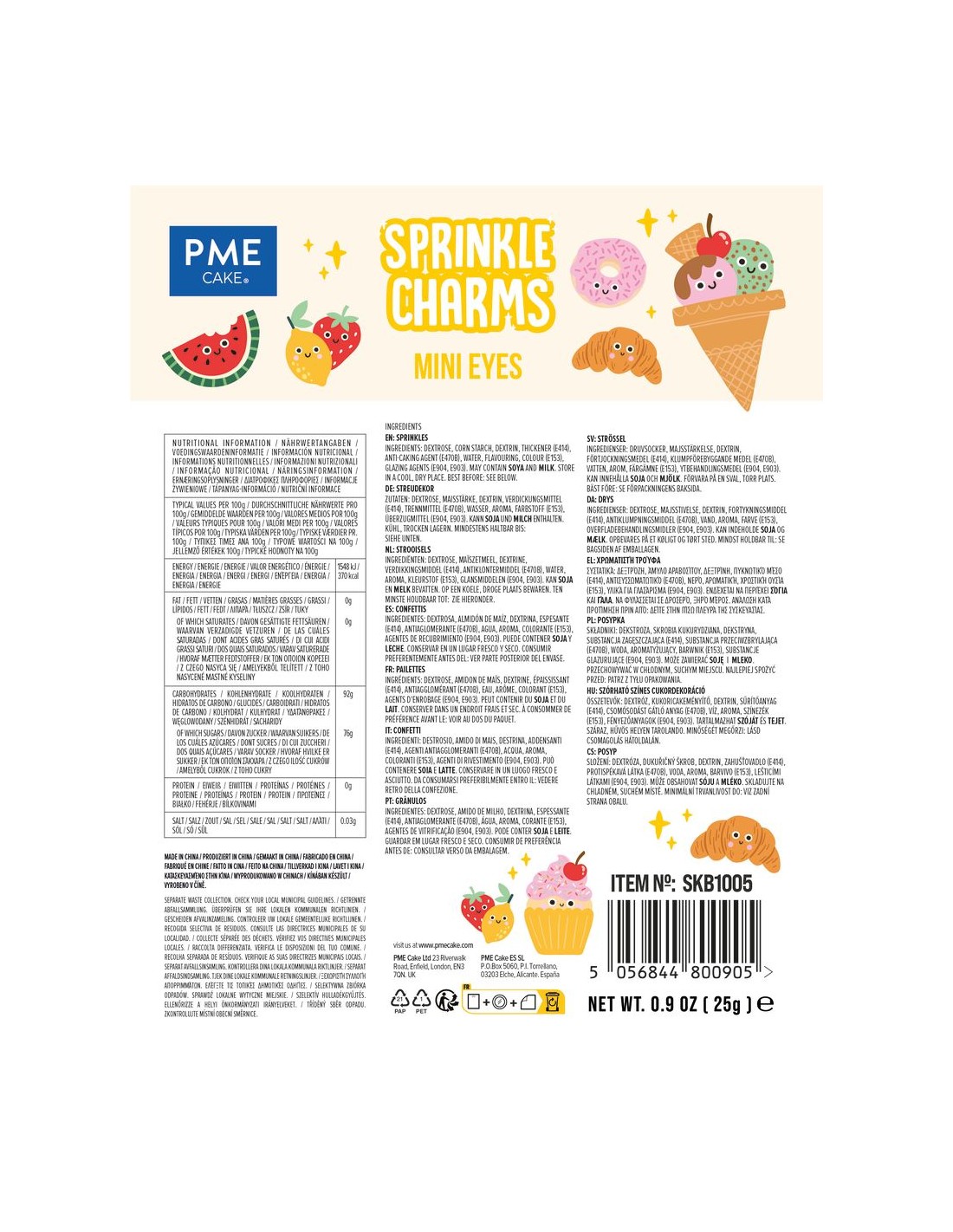 Deze Sprinkle Charms van PME zijn de eetbare accessoires waar je baksels op hebben gewacht. Elk charm-figuurtje is een hapklaar stukje plezier dat je traktaties direct laat stralen. Met designs variërend van eenhoorns tot raceauto’s en van voetballen tot bloemen, geven deze chunky charms een instant wow-factor aan elk baksel. Perfect over ijs of op donuts, desserts, cupcakes en meer. Of je nu decoreert voor thematische verjaardagen, feestdagen of gewoon een zoete verrassing maakt voor een geliefde, een beetje PME-charm doet al snel veel.