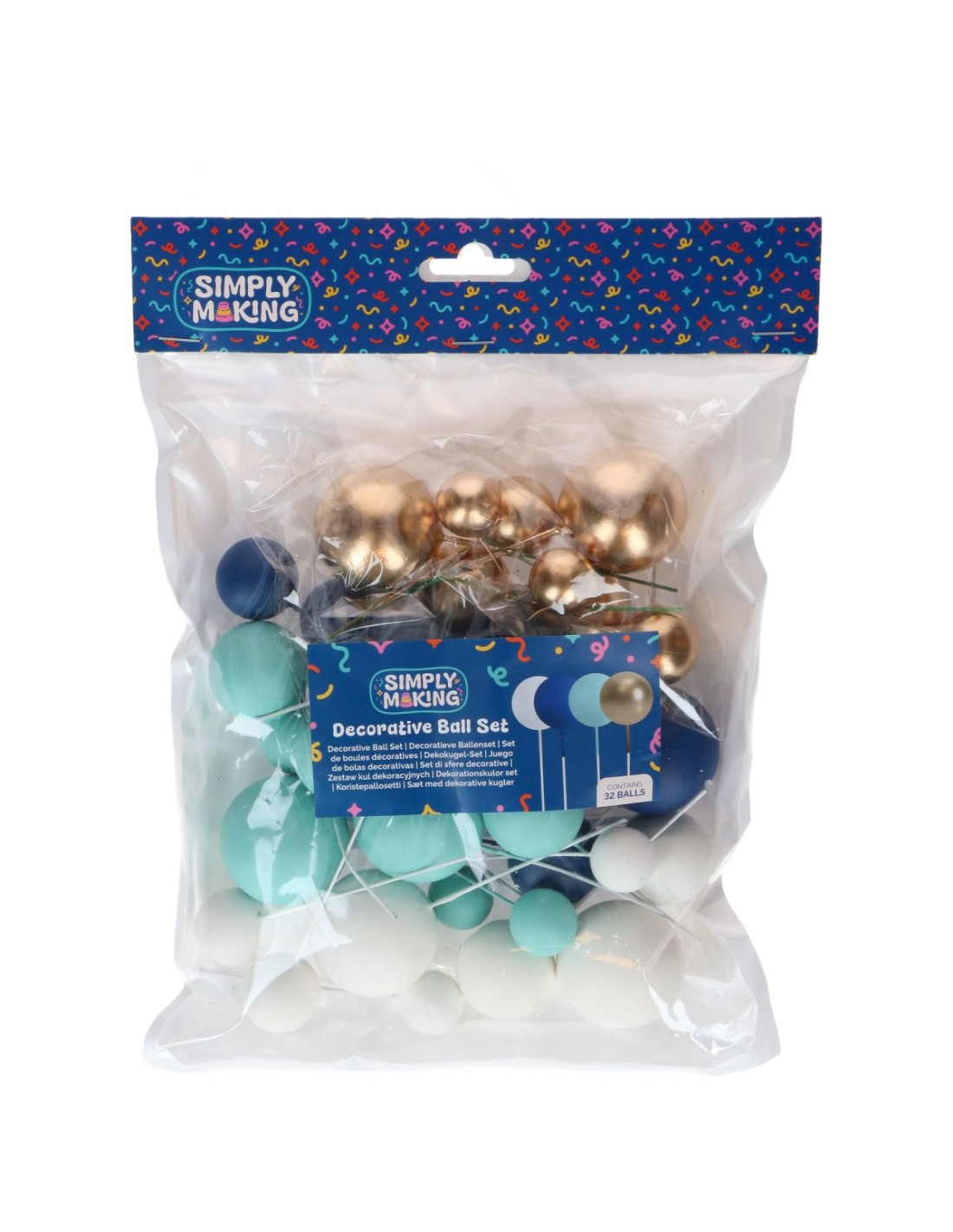 Simply Making Decoratieve Ballen Set Blauw/Wit/Goud -32st-