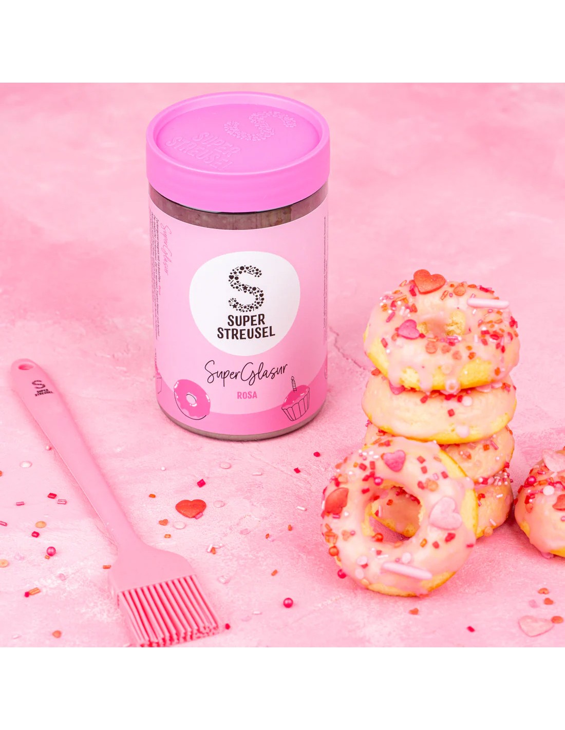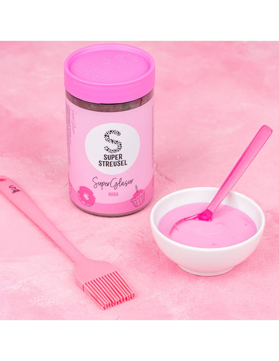 Het magische glazuur in roze dat met een paar druppels water kleurrijk decoratieplezier wordt! De SuperGlaze is een poeder dat je gewoon koud kunt mengen met een beetje vloeistof. Je hebt een kleurrijk glazuur voor het versieren van koekjes, cake en muffins. Bijna als magie, maar dan lekkerder! Je kunt het gemakkelijk aanbrengen met een bakkwastje of direct met een lepel. Voeg dan hagelslag toe en in een paar seconden is je gebakje mooi. Het kan niet makkelijker!