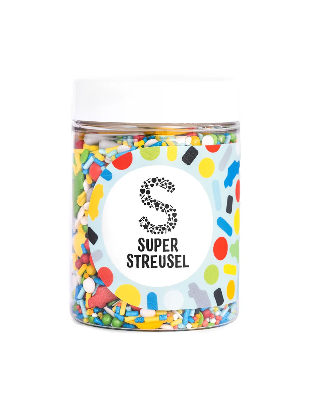Hou je vast – daar komt de Turbo Racer! Met piepende banden raast hij over je verjaardagstaart, raast over cupcakes en neemt hij de scherpe bochten op de Muffin Highway. Deze sprinklemix bevat pure paardenkracht voor racers van alle leeftijden die dol zijn op auto's!