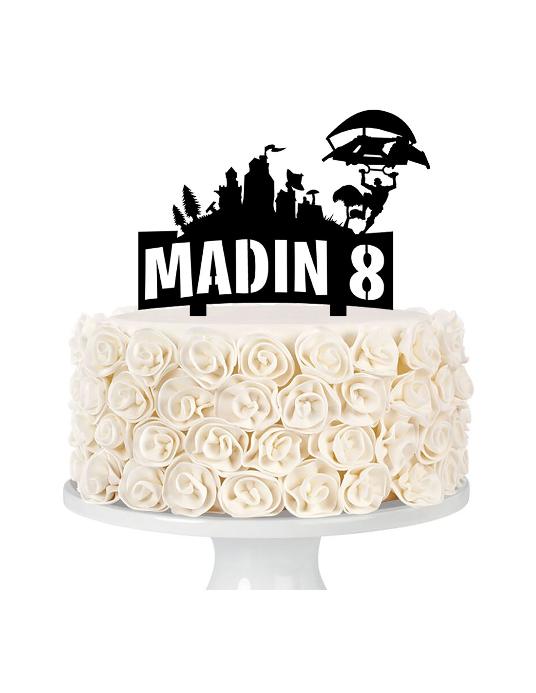 Taart topper Fortnite met Naam. U kunt de gewenste naam en leeftijd opgeven op bij de opmerkingen tijdens het afrekenen.