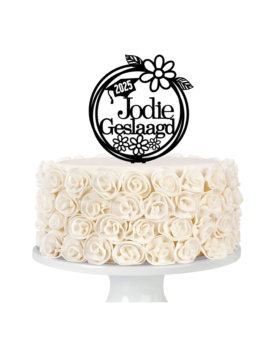 Taarttopper op Maat: Geslaagd Bloemen Rond met Naam