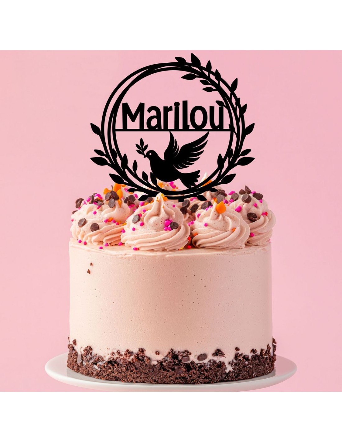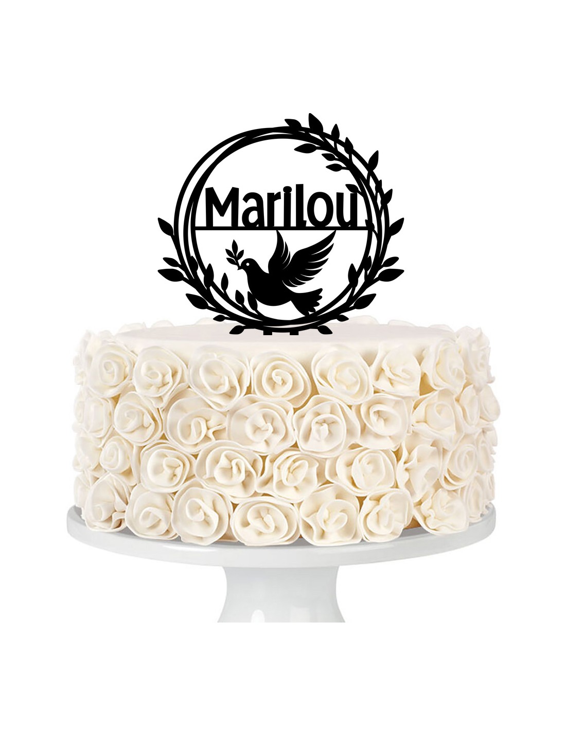 Taart topper Duif met Naam. U kunt de gewenste naam opgeven bij de opmerkingen tijdens het afrekenen.