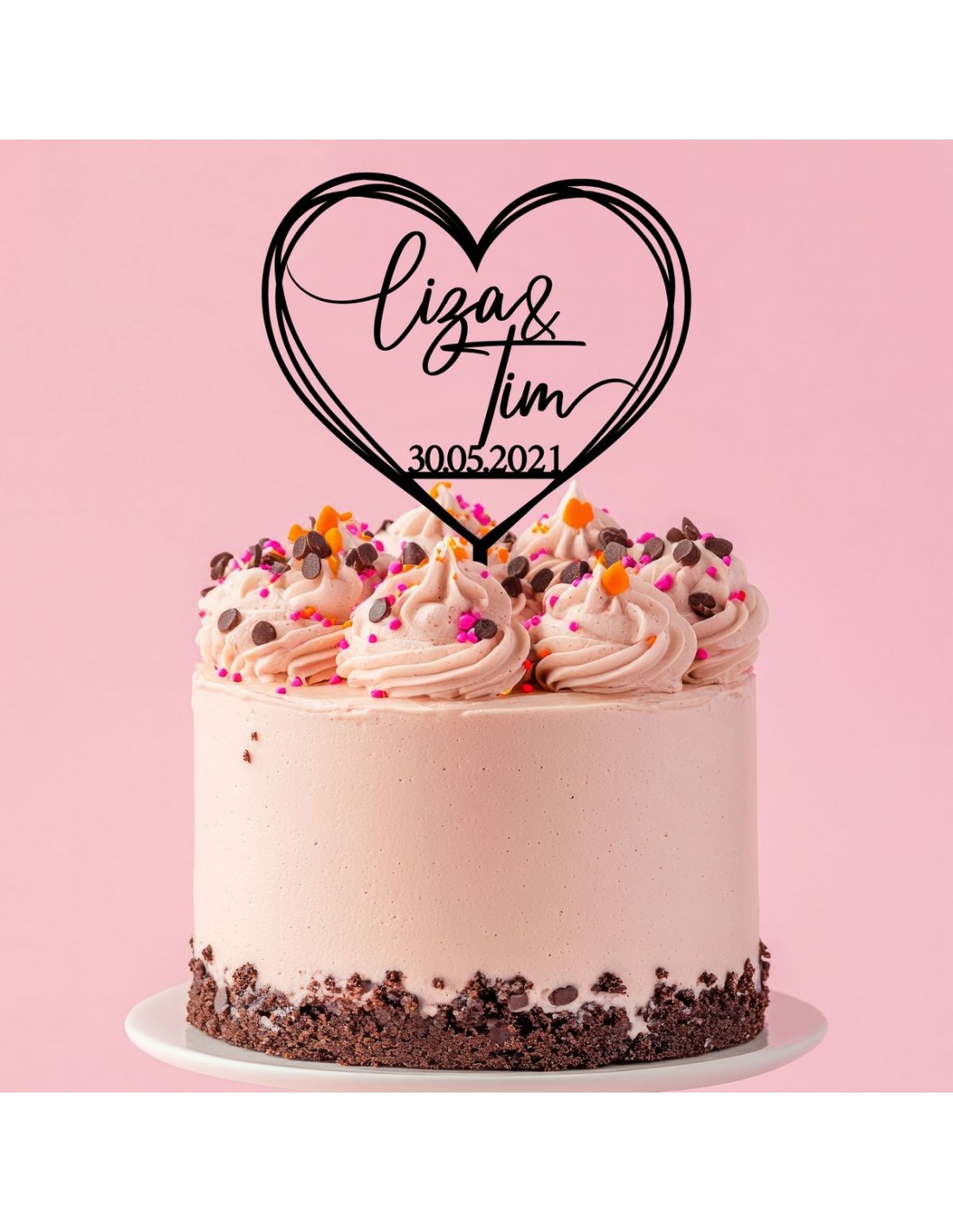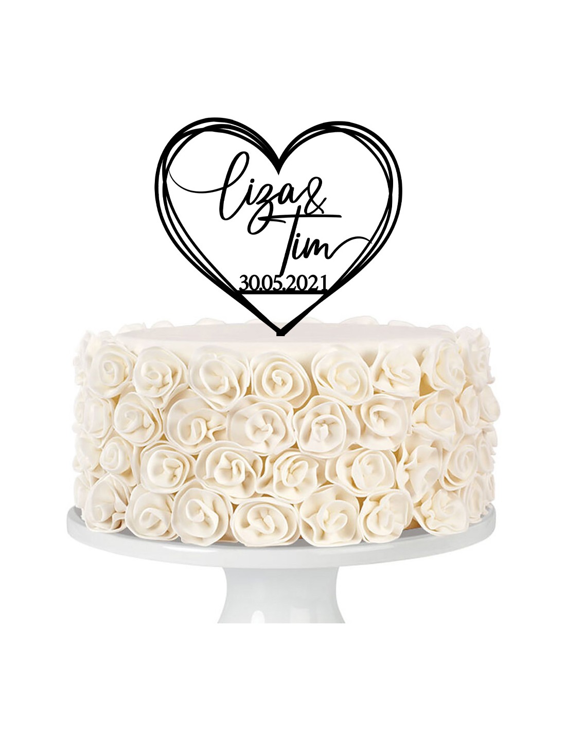 Taart topper met naam en datum. U kunt de gewenste naam en datum opgeven bij de opmerkingen tijdens het afrekenen.