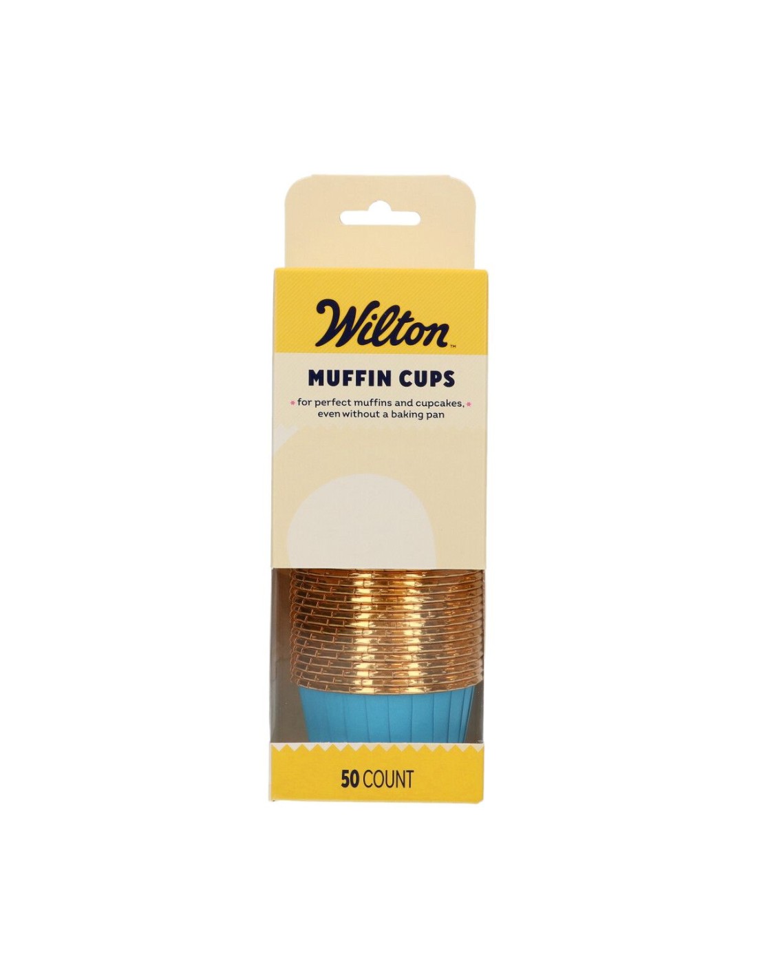 Met deze stevige blauwe Wilton Baking Cups bak je zonder moeite prachtige muffins en cupcakes. Het hoogwaardige materiaal zorgt ervoor dat je baksels perfect in vorm blijven, zonder dat je een extra bakvorm nodig hebt. De glanzende gouden metallic rand geeft elk gebakje een luxe uitstraling en blijft mooi helder tijdens het bakken. Dankzij het flexibele materiaal zijn de bakvormpjes eenvoudig te gebruiken, terwijl je creaties toch strak en stevig blijven. Daarnaast zijn deze baking cups ideaal voor het presenteren van andere lekkernijen, zoals petitfours, snoepjes of cakepops. Zo maak je van iedere desserttafel een feestelijk geheel!