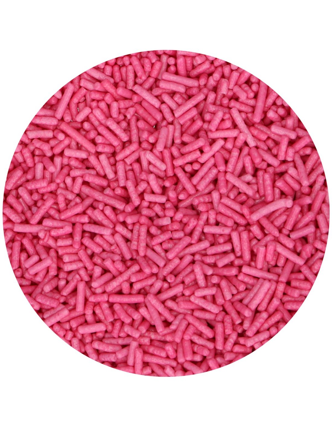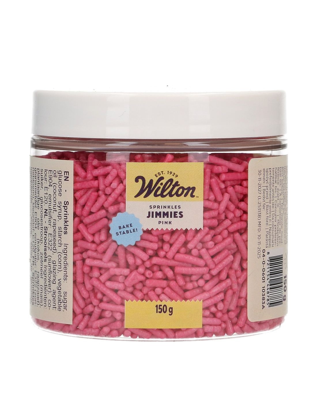 Voeg lekker wat kleur toe aan elke hap met de Wilton Jimmies! Deze sprinkles zijn speciaal ontwikkeld om hun levendige kleuren tijdens het bakken te behouden. Ze kunnen worden gemengd door koekjesdeeg, cupcakebeslag of lichte cakes, zodat je lekkernijen er van binnen net zo leuk uitzien als van buiten. Een essentieel ingrediënt voor elke verjaardagstaart, regenboogtaart of andere themataart! Kies de kleur die bij je thema past en creëer eenvouding een verrassingseffect bij het aansnijden van de taart. Verkrijgbaar in meerdere kleuren en een regenboogmix.