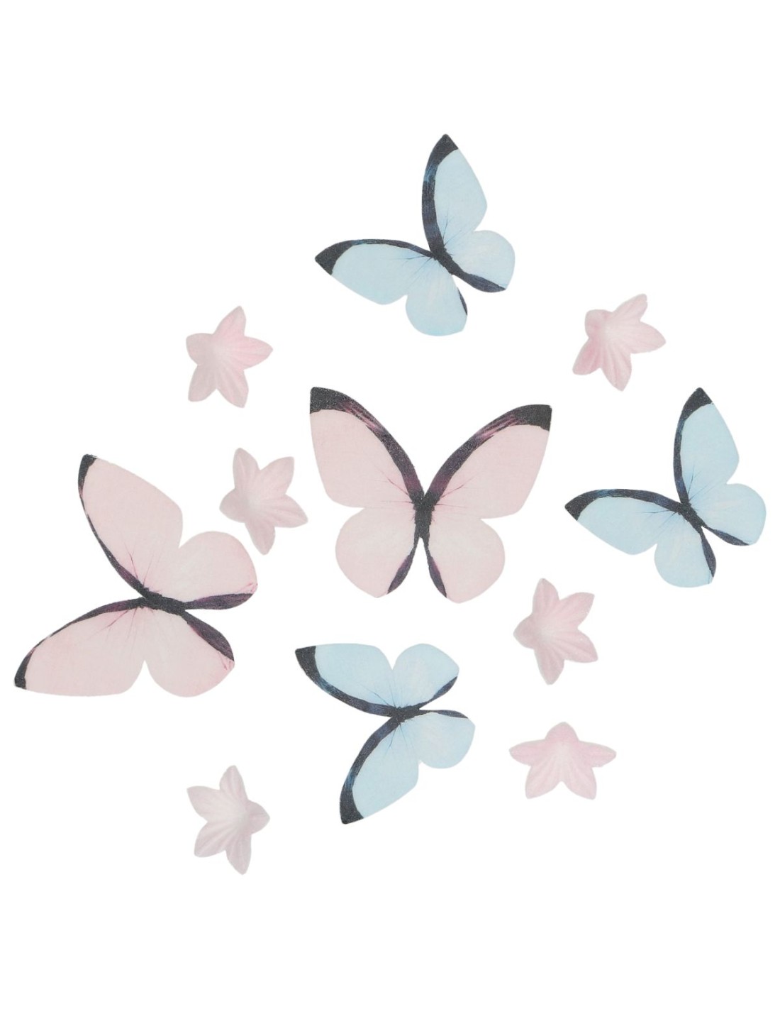 Geef je baksels een vrolijke uitstraling met de Wilton Eetbare Papieren Decoraties Vlinders Ombre Blauw set/8. Deze eetbare vlinders komen in prachtige ombre blauwtinten en een verpakking bevat zowel grote als kleine formaat vlinders. Ze zijn direct klaar voor gebruik en geven taarten of cupcakes een speelse touch. De stevige verpakking houdt ze mooi en zorgt ervoor dat je ze veilig kunt bewaren.