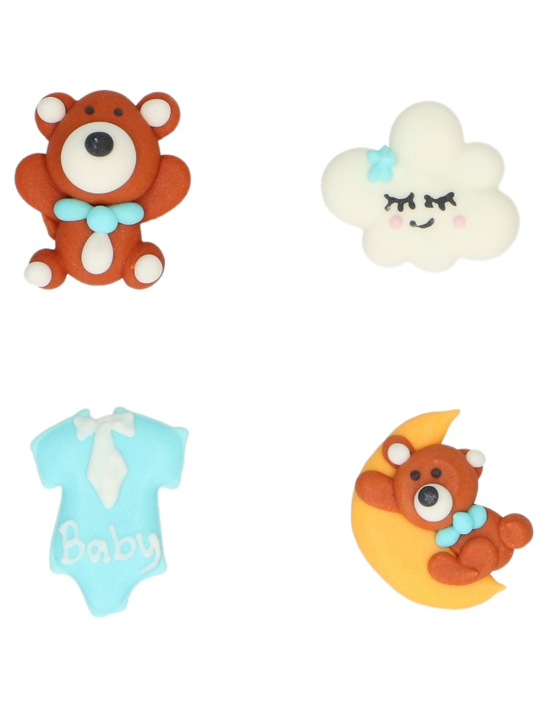 Maak je baksels extra schattig met de Wilton Suikerdecoraties Baby Bliss Blauw set/8. Deze set bevat 8 lieve suikerdecoraties in de vorm van teddyberen, wolkjes, rompertjes en beertjes op de maan. Perfect voor het versieren van cupcakes, koekjes en taarten bij babyshowers, gender reveal feestjes of elke gelegenheid met een baby-thema.