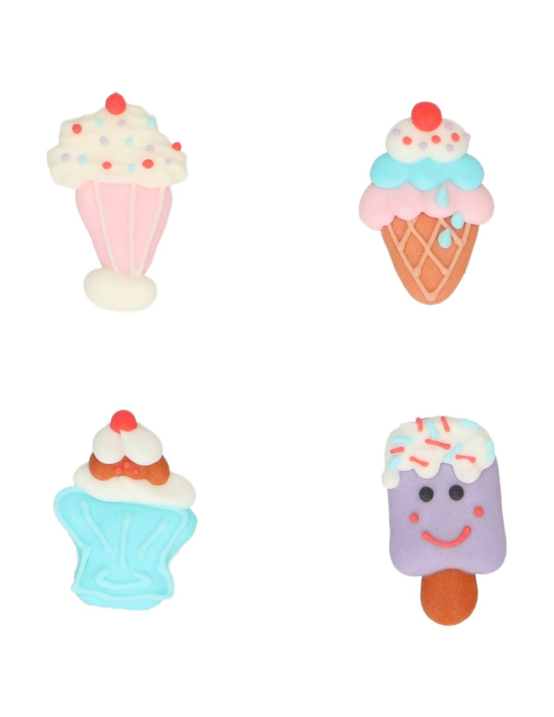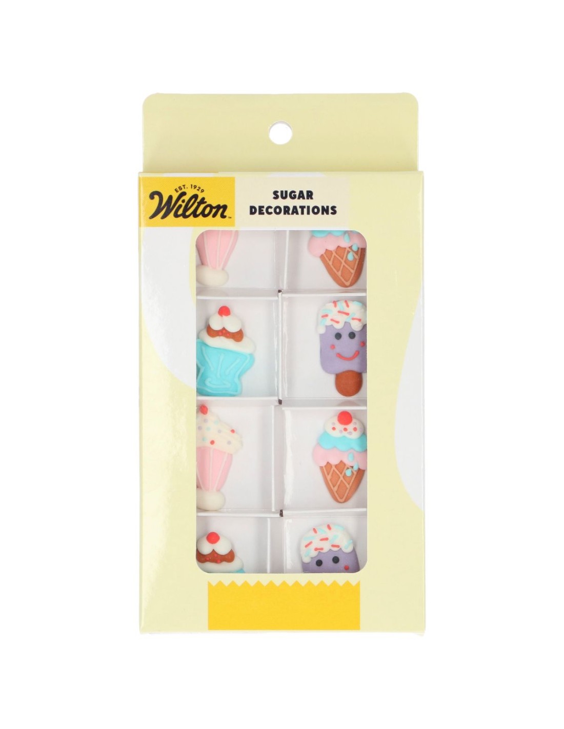 Maak je baksels extra leuk met de Wilton Suikerdecoraties Ice Cream Party set/8. Deze set bevat 8 schattige suikerdecoraties in de vorm van milkshakes, ijsbekers, hoorntjes en ijsjes op een stokje. Perfect voor het versieren van cupcakes, koekjes en taarten bij kinderfeestjes, ijsfeestjes of elke feestelijke gelegenheid.