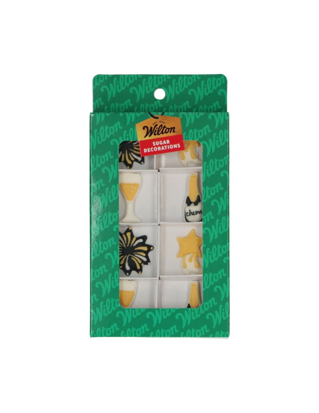 Laat je oudejaarsbaksels schitteren met de Wilton Suikerdecoraties Sprankelend Feest. Deze feestelijke set bevat 8 suikerdecoraties in oudjaarsthema, zoals vuurwerk, champagneglazen, flessen en gouden sterren. Perfect om cupcakes, koekjes en taarten te versieren voor countdownfeestjes of feestelijke gelegenheden.